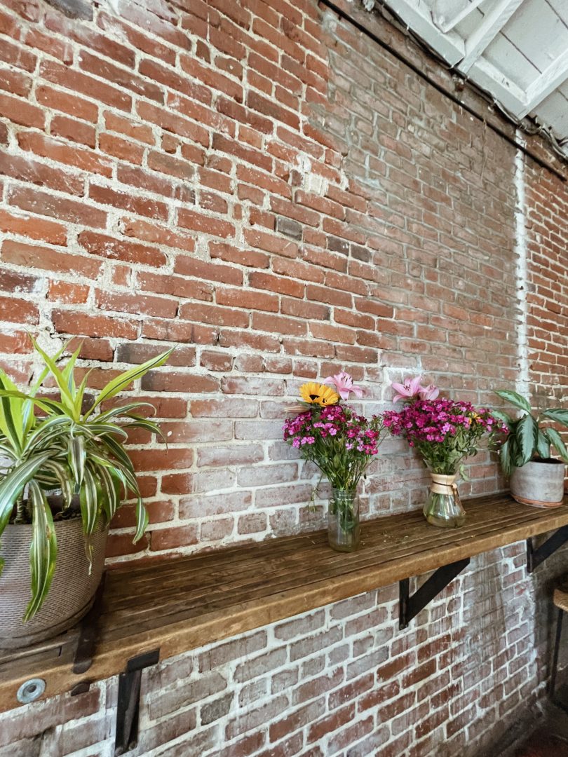 塗装が剥がれた壁から現れるレンガや、ライト、天井についている扇風機